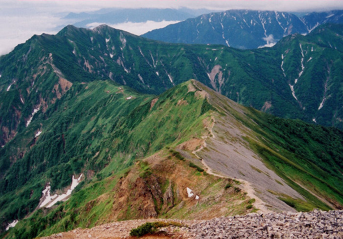 | 鹿島槍ヶ岳(南峰)〜布引山〜冷池山荘=約30分+約30分 |