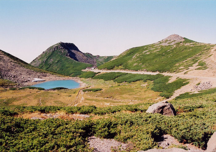 畳平は四方を大黒岳(2777m)・恵比寿岳(2831m)・富士見岳(2817m)・摩利支天岳(2872m)に囲まれており、各峰の合間から穂高連峰・八ヶ岳・南アルプス・富士山等の名峰が見えます。まさに天空のドライブイン。四方の各峰は、いづれも150m以上の高度差がありますが、たぶん、さほど苦労しないで登れると思います。でも今回はパス。