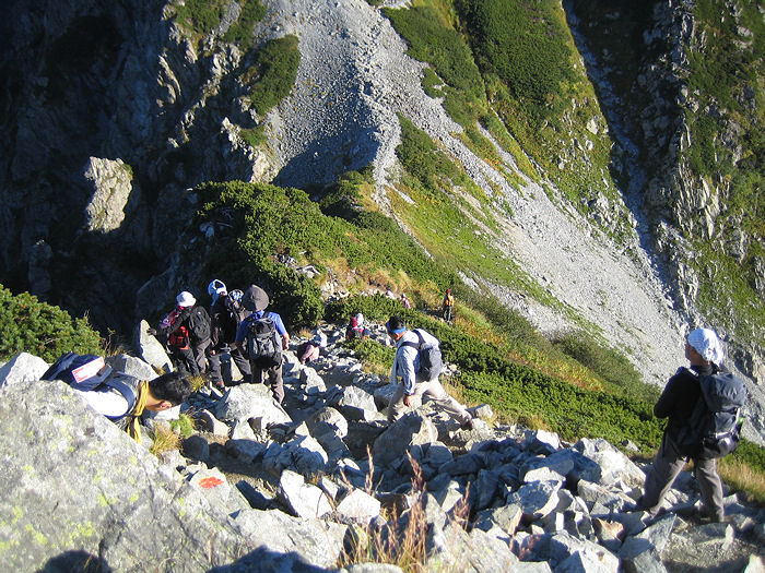 前剱から先は勇気が必要です。 ここら先はいよいよ「カニのタテバイ・ヨコバイ」が登場する区間となりますが、じつはその手前にも超怖いポイントがあります。