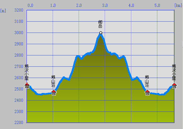 | 剱沢小屋〜一服剱〜前剱=約25分+約50分 |