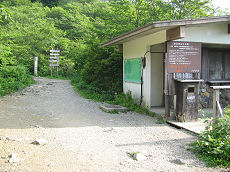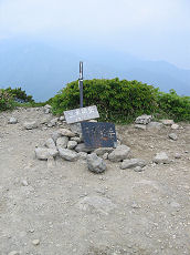 峰の茶屋は無人でした。避難小屋なのですが、「茶屋」というので、売店があるのかと想像していましたが、やっぱり、無人小屋でした。 |