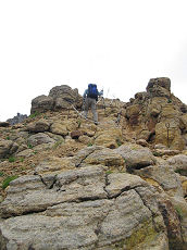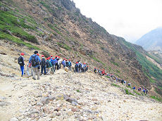 朝日岳分岐で小学生の遠足に出会いました。みんな身が軽くて、進むのが早かった。 |