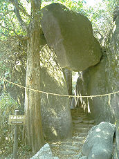 女体山〜つつじヶ丘方面への道は巨岩・奇岩が多く見られます。まずは女体山から10分ほど下った所に「大仏岩」、その後「北斗岩」「裏面大黒」「出船入船」「母の胎内くぐり」「高天ヶ原神社」そして超コワイ「弁慶七戻り」と続きます。なかでも巨岩の下をくぐる「弁慶七戻り」は、あの弁慶でも怖くて7回戻った?程にコワイですよ〜。