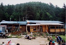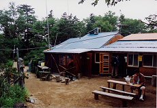 薬師岳小屋は樹林に囲まれた一見こじんまりとした小屋でした。薬師岳小屋を後にして、砂礫の急斜面を約5分も登れば薬師岳頂上となります。この辺りまでくると作者一行の足も疲労困憊です。砂礫の登りなどでは歩幅20cm位でした・・・。