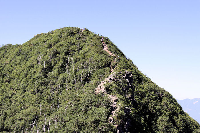 下山は登りと同じルートで下りました。炎天下とキツイ照り返しに苦しみましたが、頑張って駒津峰を乗り越え、双児山を過ぎればようやく樹林へ。時間的には仲間のペースが疲労で激落ちしたため、登りとほとんど変わらないくらい掛かってしまいましたが、全員怪我をすることもなく無事に下山できたのが何よりでした。 |