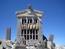 甲斐駒ヶ岳の頂上には、祠があり信仰を続ける山麓の方々の思いがつまった草鞋が奉られています。
