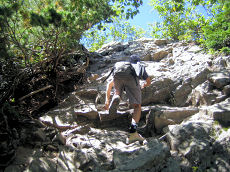 途中、摩利支天との分岐を過ぎると登りもいよいよ終盤。最後はかなり厳しいです。 |