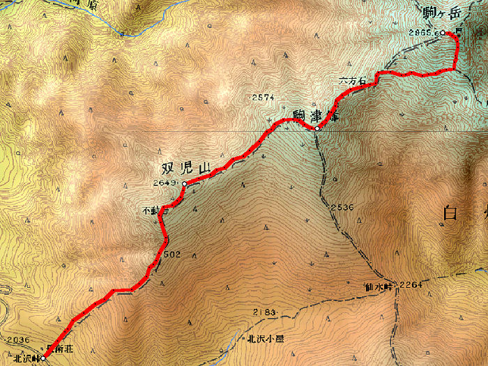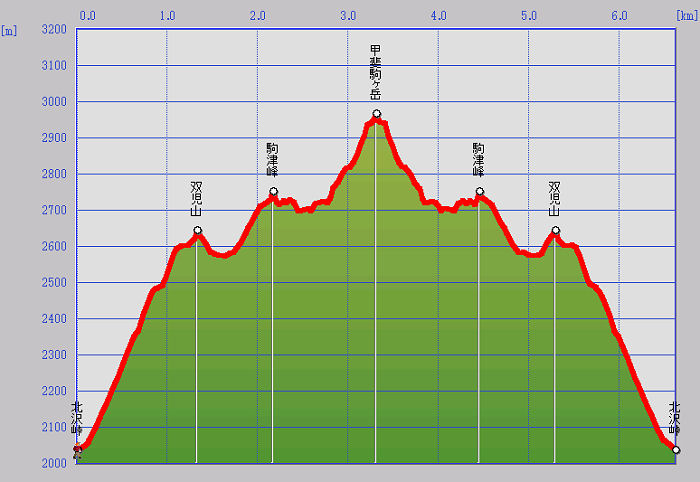| 甲斐駒ヶ岳〜北沢峠=約3時間10分 |