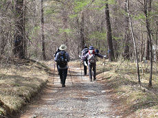 最後はダケカンバとシラカバの美しい森をポクポク下ってゴール。頂上でルートを変えたため、あっけなく着いてしまいましたが、無理して三宝山方面に進んでいれば今頃大変だろうなと思い、安全第一・早着一番・腹八分目などの文句を並べて帰路へ・・・。 |