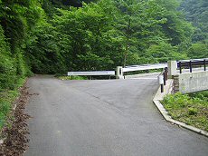 塩水橋より林道入口ゲートをくぐって林道を歩きます。道は本谷橋まで舗装路です。5分ほど歩くと右手に「瀬戸橋」が現れます。この橋を渡って進むと「堂平」登山口、渡らず直進すると「本谷橋」登山口となります。