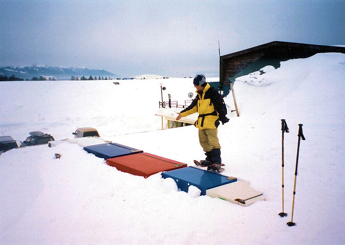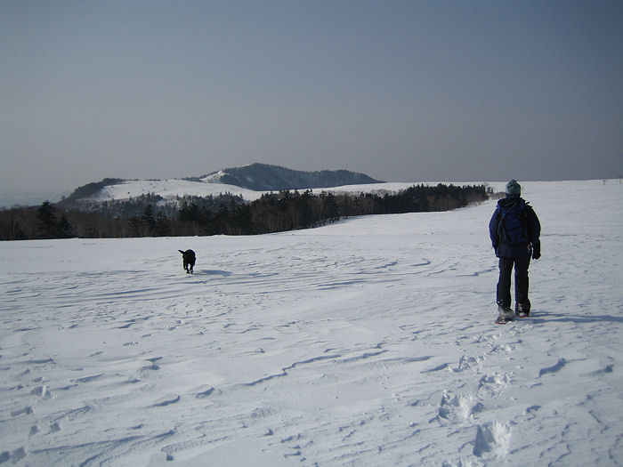 王ヶ頭のアンテナ群を横目に大雪原を進みます。 |