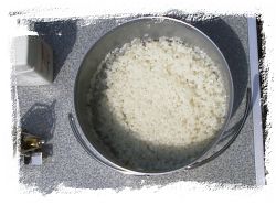 ムキになって水が透明になるまで何十回も繰り返す必要はないです。かえって、お米のおいしい部分をそぎ落としてしまうので、あくまでも適当な回数で結構ですヨ。 |
